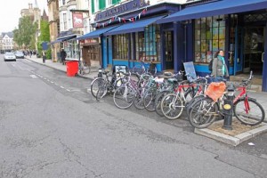 This bike park is always crammed and busy. There are often 15 parked bikes here in the space it takes to park one car. (On the left you will see two empty disabled car parking spaces.) More car parking spaces behind bike rack. On this street, bike parking is pretty limited compared to car parking. […]